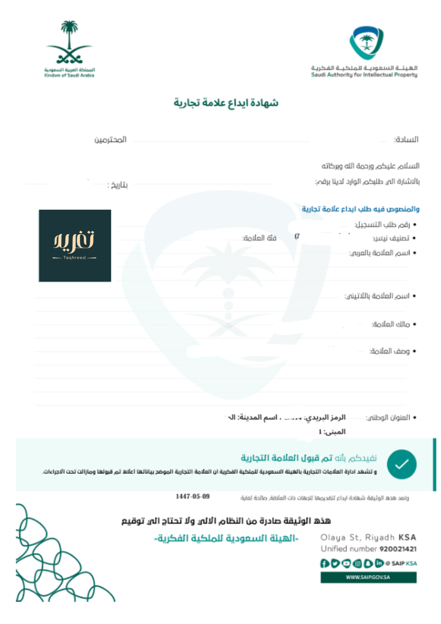 - النتيجة: حماية كاملة لعلامتك التجارية لمدة 10 سنوات.